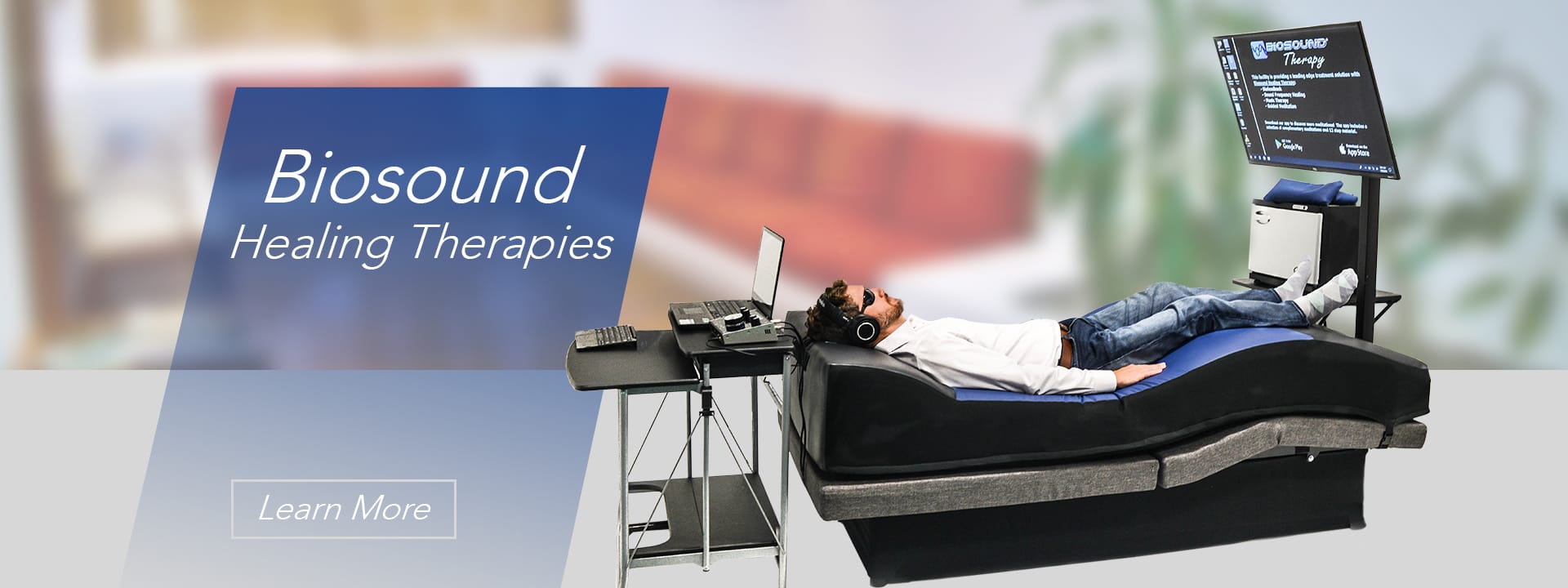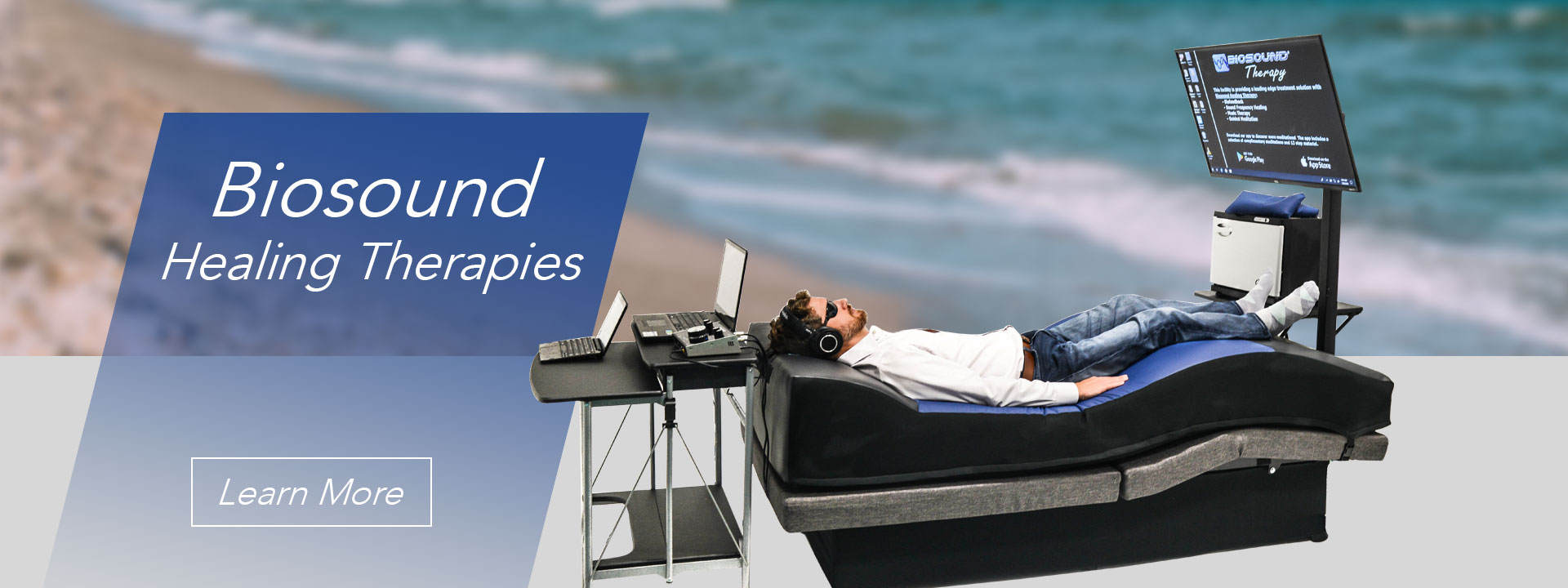 Biosound Therapy’s brain-based whole-body wellness delivers healing sound frequencies with deep resonant vibrations that are felt in every cell of your body. The vibrations are choreographed with the music, so the patient not only hears the music, but also feels it!